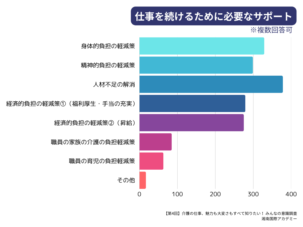 | 人手不足に関する言及は多く、深刻な問題。働き方・待遇・支援の3点を軸に、“選ばれ・続けられる職場”の設計が必要。 |