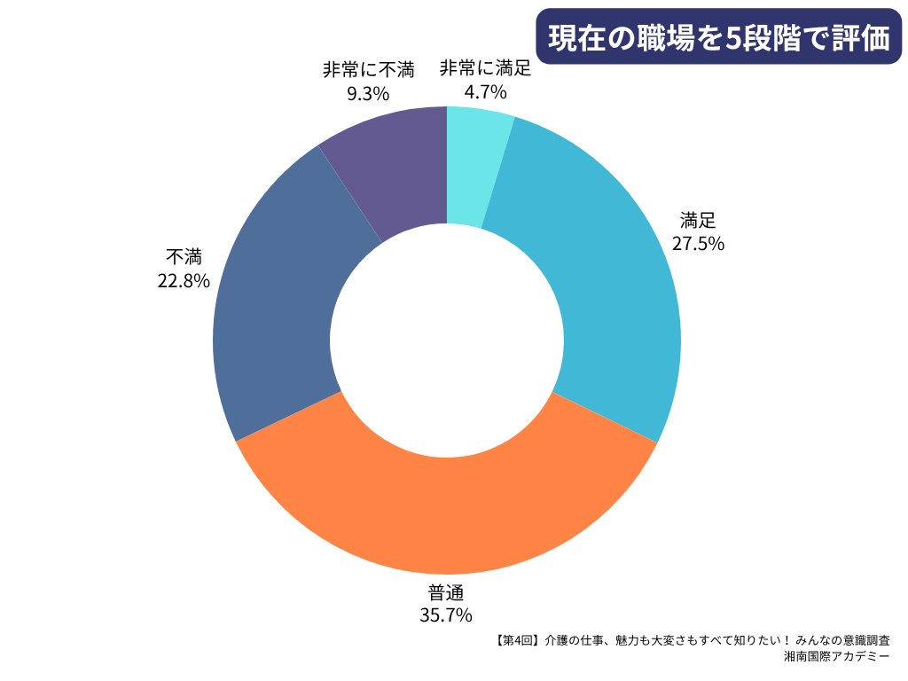| 満足度 | 4.7% | 27.5% | 35.7% | 22.8% | 9.3% |