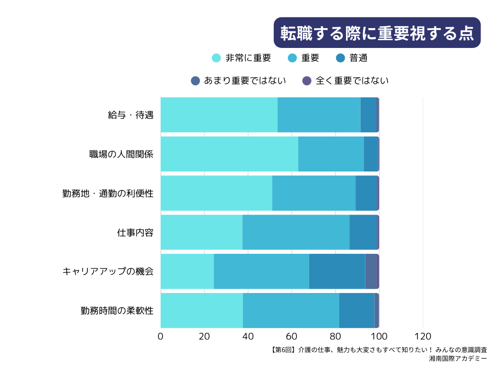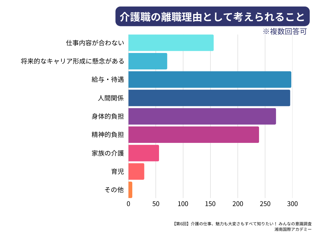 これらの結果から、今後の介護業界においては、処遇改善はもちろんのこと、人材定着を見据えた職場環境の整備やマネジメントの質の向上、そして介護職の社会的価値の向上に向けた取り組みが、これまで以上に重要になると考えられます。