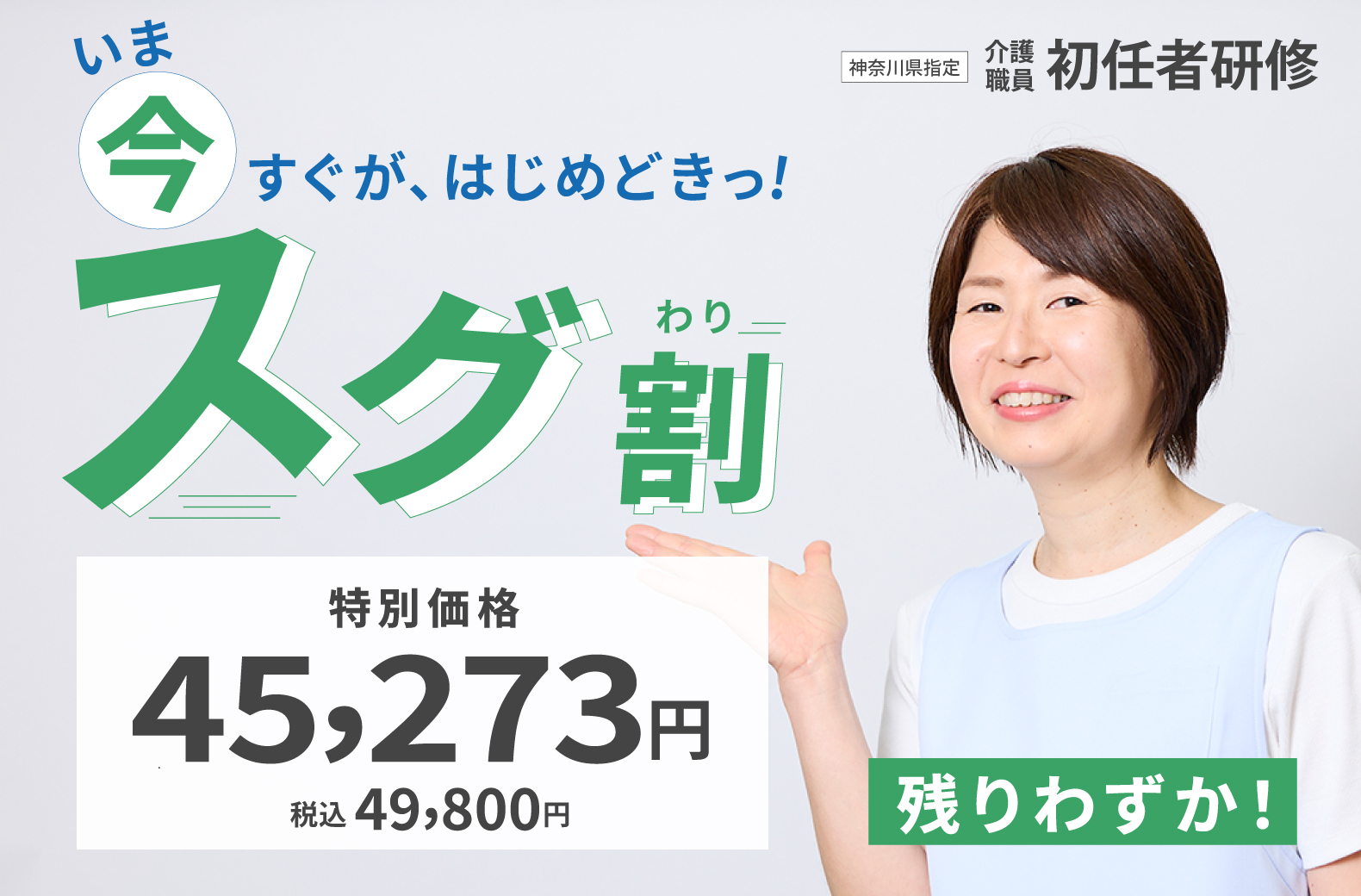 初任者研修の受講を迷っている方におすすめの、開講2週間前を切ったコースをお得な金額で受講できるキャンペーンです。