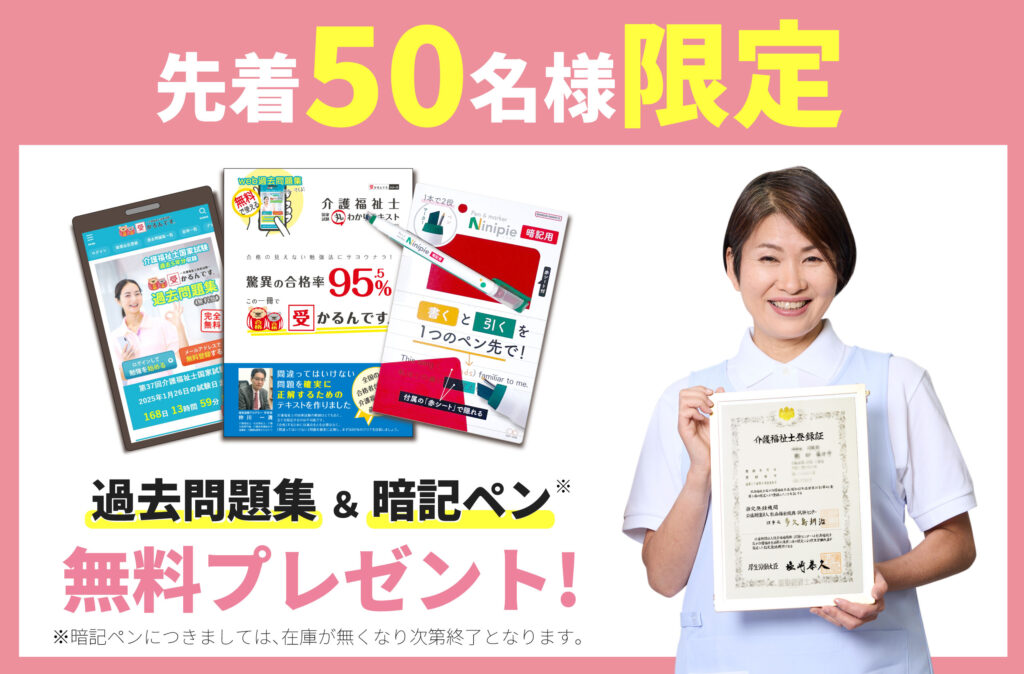 介護事業所様に勤務する職員様で、2025年1月に予定されている第37回介護福祉士国家試験を受験予定の方向けに、先着50名様限定のキャンペーンを開始いたしました。