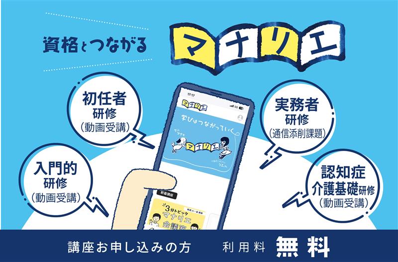 マナリエは介護を「学び」続けるあなたを支えるeラーニング・プラットフォームです。
